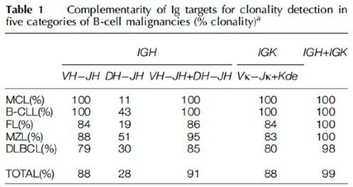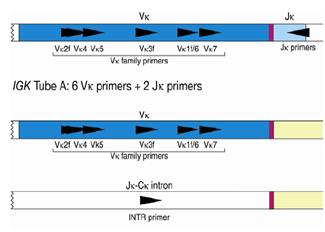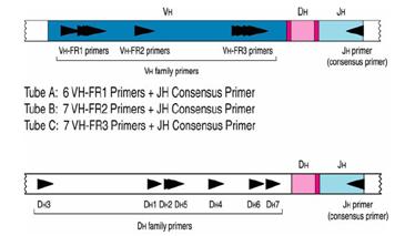 2.Van Dongen, JJM et al. Design and standardization of PCR primers and protocols for detection of clonal immunoglobulin and T-cell receptor gene recombinations in suspect lymphoproliferations: Report of the BIOMED-2 Concerted Action BMH4-CT98-3936. Leukemia 2003, 17(12):2257-2317.