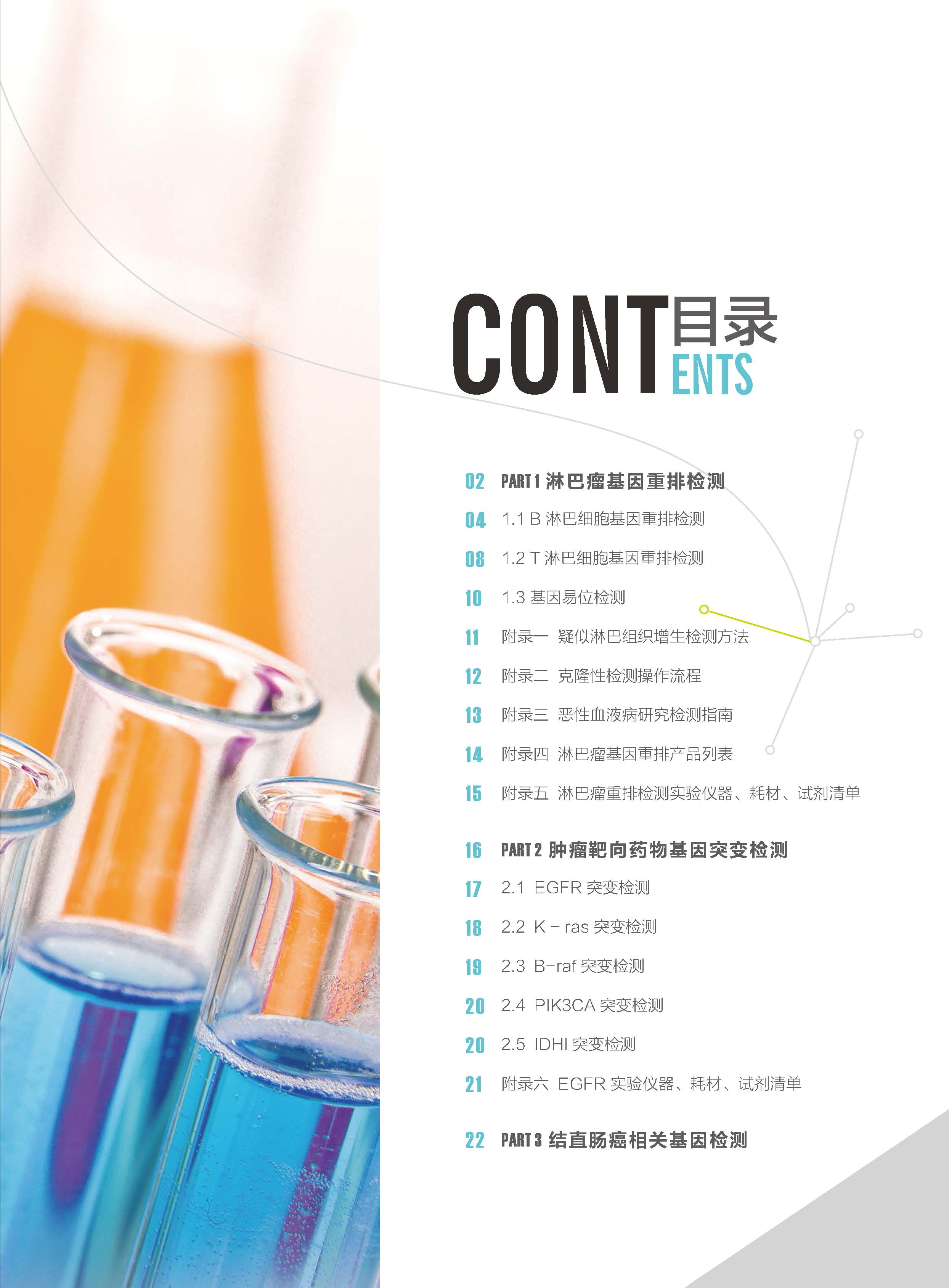 | PART 1 淋巴瘤基因重排檢測 2.2 K - ras突變檢測 2.3 B-raf突變檢測 2.4 PIK3CA突變檢測 2.5 IDHI突變檢測 附錄六 EGFR 實驗儀器、耗材、試劑清單 PART 3 結直腸癌相關基因檢測 |