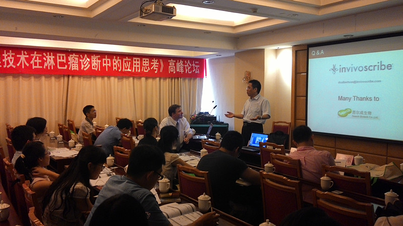參會(huì)講課的專家是中山腫瘤的分子病理實(shí)驗(yàn)室主任邵建永教授,南京軍區(qū)南京總醫(yī)院病理科副主任王建東教授以及美國(guó)Invivoscribe 公司的技術(shù)銷售經(jīng)理David。會(huì)議現(xiàn)場(chǎng)討論熱烈,參會(huì)人員對(duì)淋巴瘤分子診斷—重排檢測(cè)產(chǎn)生濃厚的興趣,很想在自己的實(shí)驗(yàn)室開展此項(xiàng)目。其中Invivoscribe 公司新產(chǎn)品,利用next-generation sequencing(NGS)技術(shù)淋巴瘤重排檢測(cè)試劑盒LymphoTrack Assays 引起了廣泛關(guān)注。