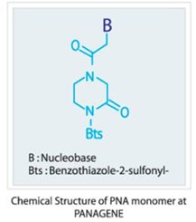 Panagene公司作為世界上唯一一家專注于PNA合成服務的公司,Panagene以其專利技術生產(chǎn)的單體Bts PNA monomers為原料(Bts ; benzothiazole-2-sulfonyl group),采用世界領先的多肽聚合專利技術。和其他公司采用的合成方法,例如Boc-或Fmoc-方法相比,Panagene公司的Bts技術顯示出其合成簡單、合成費用低、產(chǎn)量高以及純度高等優(yōu)點。我公司是PANAGENE公司授權的中國獨家代理商,欲購買Fmoc PNA單體原材料及PNA探針合成等業(yè)務請與我公司聯(lián)系。