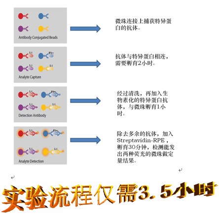 應(yīng)用Luminex xMAP®技術(shù)可以同時對多達100種蛋白進行檢測,而且結(jié)果的重復(fù)性與ELLISA相近,實驗采用的是可發(fā)光的5.6um的聚苯乙烯微珠。